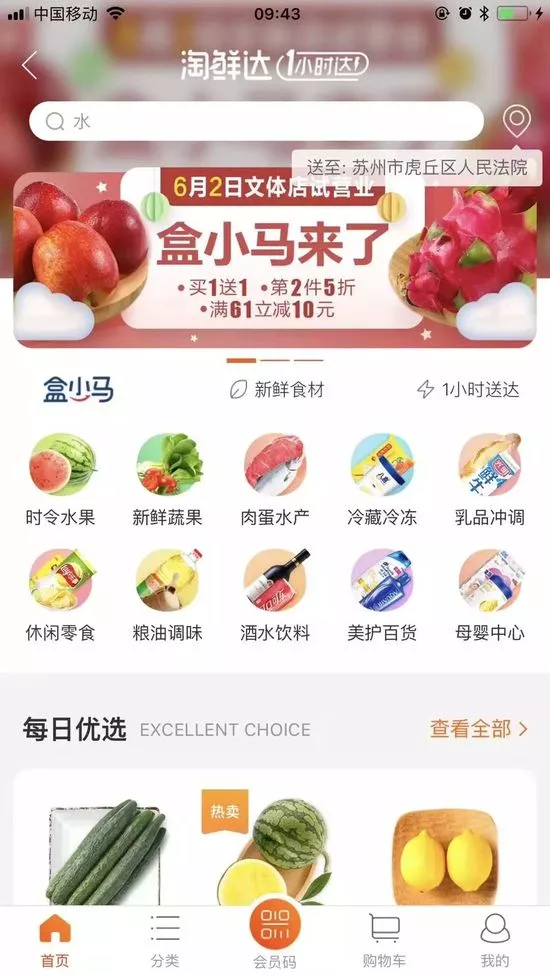 同時(shí),也不需要再下載盒馬APP,只需要安裝手機(jī)淘寶,允許淘寶使用位置,然后打開淘寶首頁就可以看到【淘鮮達(dá)】,直接戳進(jìn)去買東西就行了。每天的首單都免配送費(fèi),最快一小時(shí)送達(dá)。