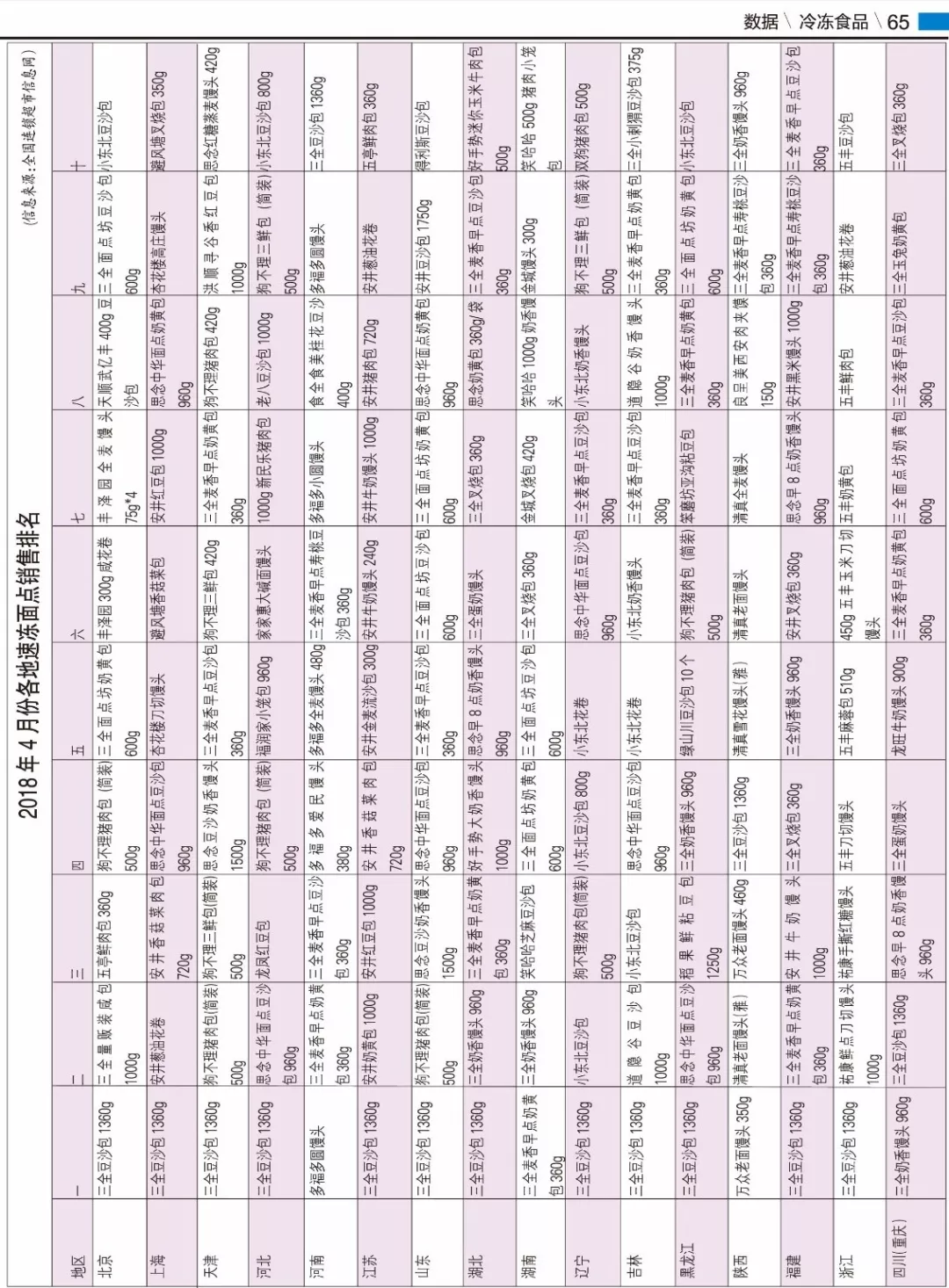 來源: 冷凍食品網(wǎng) 發(fā)布者:編輯▼2018年4月份各地速凍面點(diǎn)銷售排名