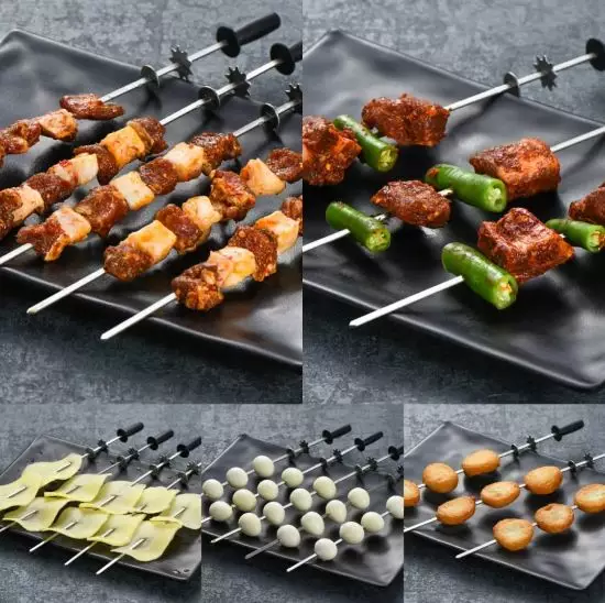 而菜品也是獨(dú)具川渝特色,并主要分兩種,一種是烤串類的半成品:大羊肉串、小郡肝、香辣排骨、滋香五花肉、秘制雞翅、專屬魚餅、特色豬腦花等;還有一種是已經(jīng)烹飪好的可以直接吃的熟食,如錫紙牛蛙等。