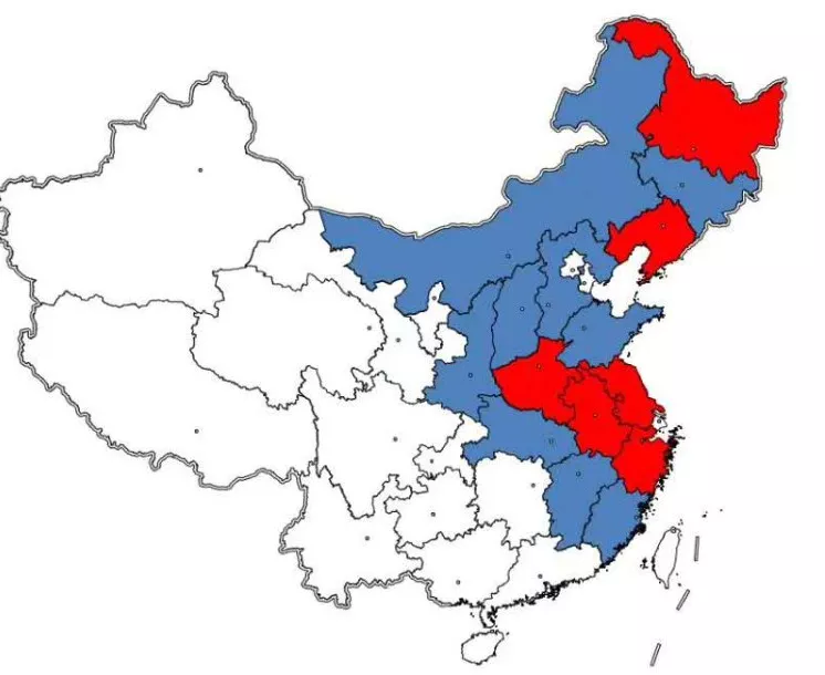 ▲ 紅色為爆發(fā)疫情省份,藍色為此次暫停調(diào)運的相鄰省份