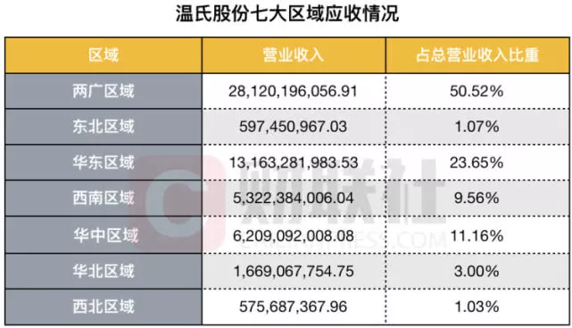 ▲溫氏股份七大區(qū)域應(yīng)收情況