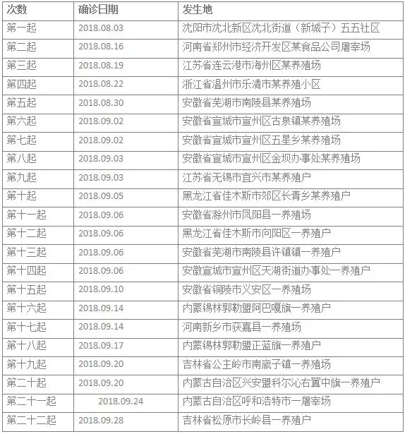 ▲非洲豬瘟22例統(tǒng)計(jì)表