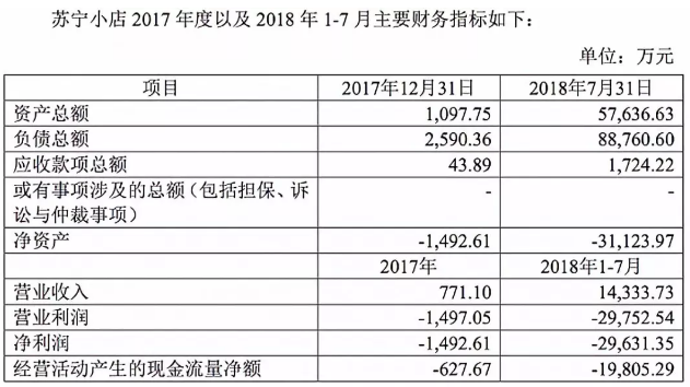 從其公告中披露出的最新業(yè)績(jī)來(lái)看,該筆增資對(duì)蘇寧小店十分重要。數(shù)據(jù)顯示,蘇寧小店2018年1至7月營(yíng)收1.43億元,虧損2.96億元,債務(wù)高達(dá)6.53億元。股權(quán)轉(zhuǎn)讓的前提,即蘇寧易購(gòu)清理掉此債務(wù)。此次將蘇寧小店業(yè)務(wù)剝離出上市公司,也是防止未來(lái)蘇寧小店擴(kuò)張?jiān)斐傻奶潛p影響到上市公司的業(yè)績(jī)。