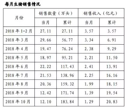 由于“非洲豬瘟”疫區(qū)封鎖、禁運等因素,雛鷹農(nóng)牧生豬銷售價格及數(shù)量均低于預期。根據(jù)其10月銷售簡報,雛鷹農(nóng)牧9月、10月的生豬銷量均只有12萬頭左右,較1月至8月的銷量大幅下降,對公司盈利能力造成較大的影響。