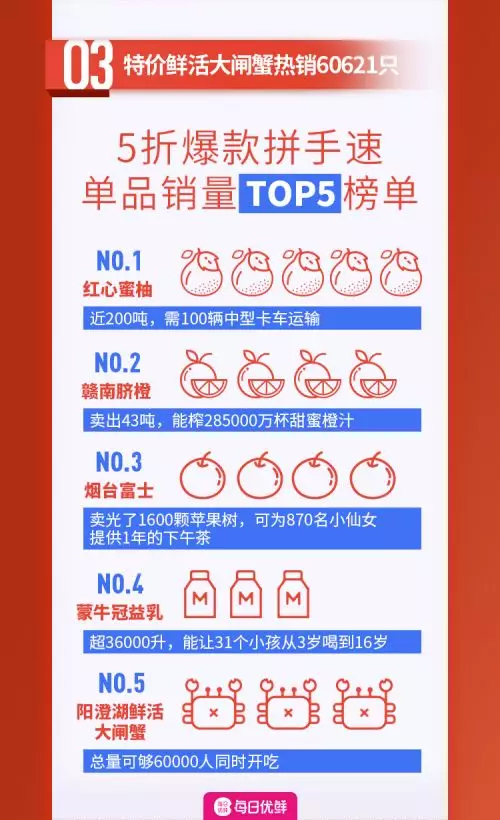今年十月份一經(jīng)推出,即受到消費者熱捧。雙十一期間,這種態(tài)勢更加高漲,從單品銷量來看,煙臺富士、贛南臍橙、紅心柚子、陽橙湖大閘蟹等商品全網(wǎng)銷量位列前茅。