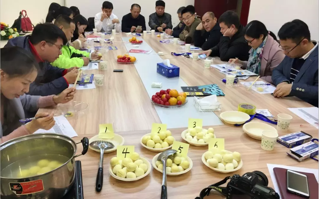 盲測部分:去掉產(chǎn)品包裝后,放在同一容器中,現(xiàn)場評委從以下六個方面進(jìn)行打分,產(chǎn)品外觀美觀度、產(chǎn)品色澤、外皮軟糯程度及大黃米香味、餡料口感、綜合口感、性價比。