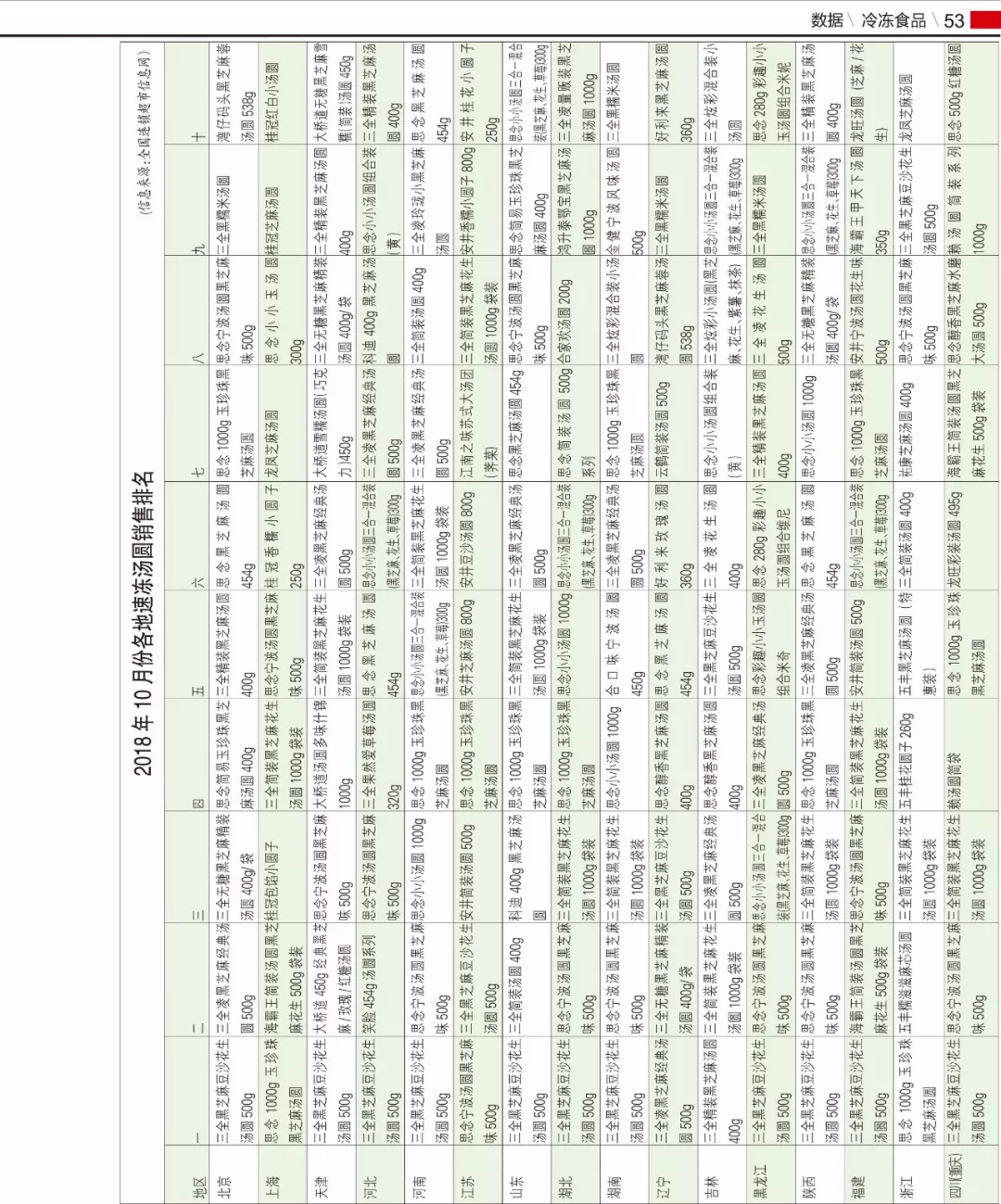 今年10月份各地速凍湯圓銷(xiāo)售排名揭曉: