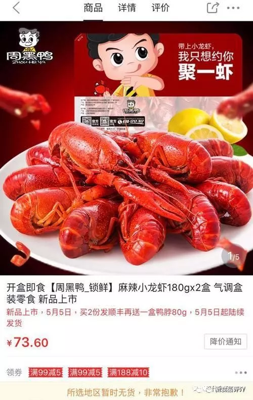 作為鴨脖界三大巨頭之一的周黑鴨去年推出“聚一蝦”品牌介入小龍蝦領(lǐng)域,該產(chǎn)品僅銷售三個(gè)月就下架,不過(guò)周黑鴨并沒(méi)有放棄小龍蝦市場(chǎng)。