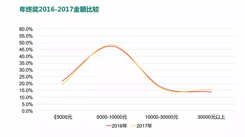 根據(jù)2016-2017年年終獎?wù){(diào)研報告顯示,近半數(shù)企業(yè)人均年終獎在5001—10000元的額度,19%的企業(yè)人均年終獎少于5000元,超17%的企業(yè)人均年終獎10001-30000元,當(dāng)然同樣有15%的任性企業(yè)人均年終獎額度超過3萬元。按行業(yè)分類,金融、游戲、汽車行業(yè)年終獎額度最高,鞋服、家具家裝行業(yè)年終獎額度最少。