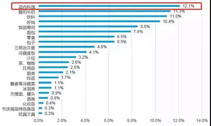 相比較而言,國內(nèi)消費者對于鮮食有著更寬容的心態(tài)。據(jù)調(diào)查,12.1%的消費者進便利店會購買店內(nèi)料理,再算上關東煮10.4%,飯團壽司8.5%、包子、三明治等鮮食的購買比例,總體數(shù)據(jù)側(cè)面反映了中國消費者對鮮食相對信任的態(tài)度。