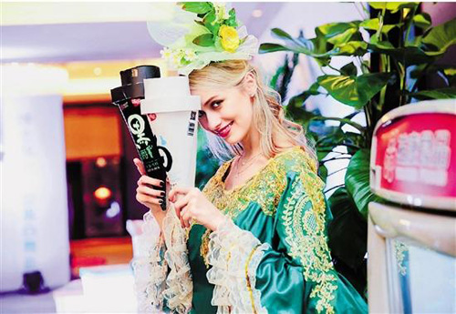 模特向消費(fèi)者展示祐康冷飲新產(chǎn)品