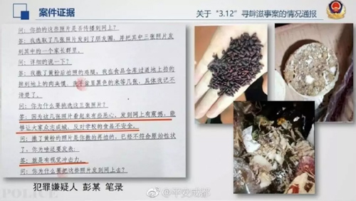 3月17日,記者從成都市公安局了解到,經(jīng)過深入調(diào)查,通過現(xiàn)場監(jiān)控,當(dāng)事人手機照片電子比對,以及當(dāng)事人供述,警方初步確定“變色”雞腿,“發(fā)霉”毛肚等“問題食品”均是人為。目前已有3名嫌疑人被警方控制調(diào)查。