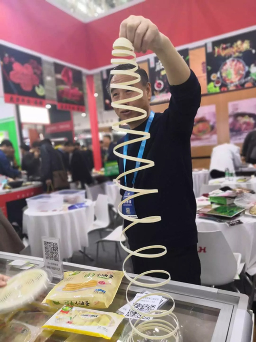 在展會(huì)上,火燒饃、卡通面點(diǎn)、蒸餃等米面產(chǎn)品也吸引了眾多觀展人員關(guān)注。