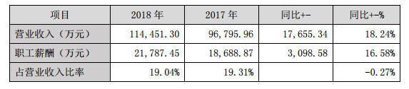 報(bào)告期公司計(jì)提職工薪酬21,787.45萬元同比上年增長16.58%,低于營業(yè) 收入的增長幅度,職工薪酬占營業(yè)收入比率同比下降0.27個(gè)百分點(diǎn),詳見下表: