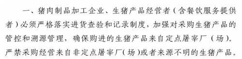 第一,對(duì)生豬產(chǎn)品來源,做好溯源,必須來源于定點(diǎn)屠宰廠。
