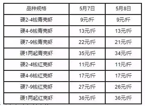 其中,湖北洪湖市閩洪水產(chǎn)市場硬4錢下青殼蝦8元/斤,武漢白沙洲市場硬2~4錢青殼蝦9元/斤,價格跌破10元。