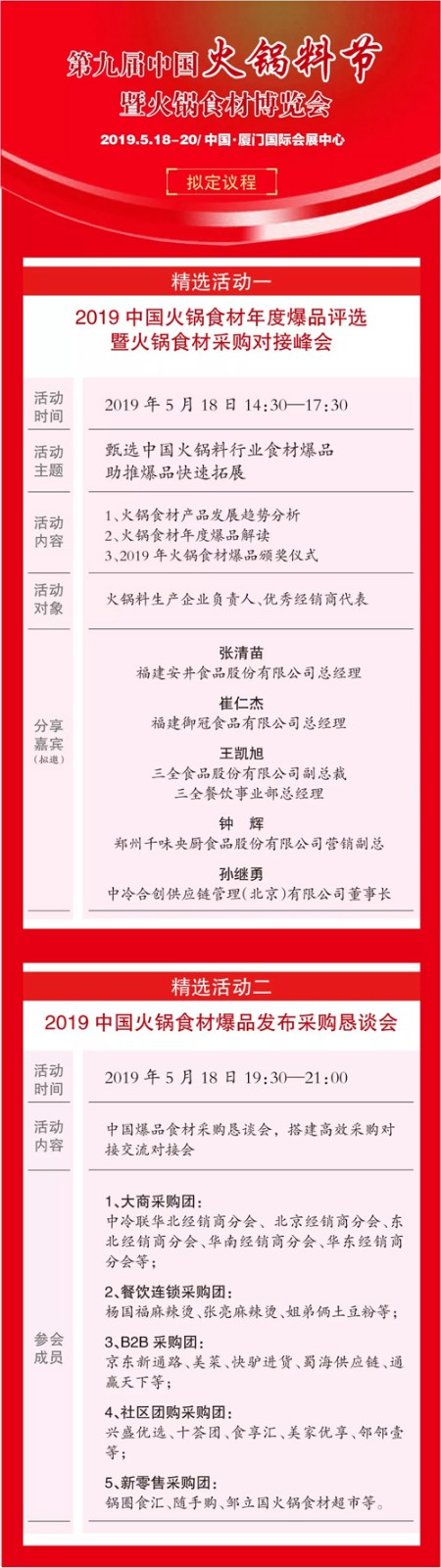 再過一個(gè)多月,由中國(guó)食品報(bào)社主辦的2019年第九屆中國(guó)火鍋料節(jié)暨火鍋食材博覽會(huì)將在廈門拉開大幕。