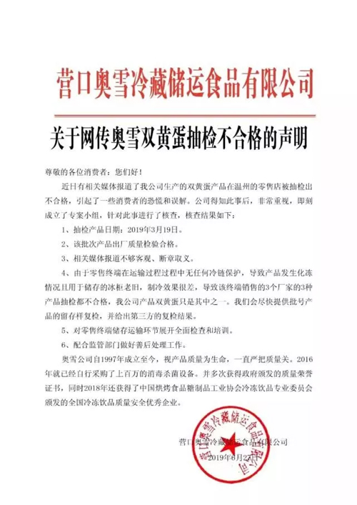 6月27日深夜,奧雪冰淇淋在其官方微博緊急回應(yīng)稱,該批次產(chǎn)品出廠質(zhì)量檢驗合格,由于零售終端在運輸過程中無任何冷鏈保護,導(dǎo)致產(chǎn)品發(fā)生化凍情況,將配合監(jiān)管部門做好善后處理工作。