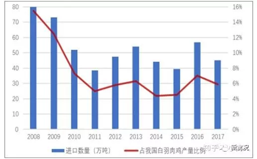 事實上,我們國家還有相當(dāng)部分的雞肉進口,這部分基本為雞腿雞翅和雞爪,出口是雞胸肉為主。我國內(nèi)地 2017 進口 45