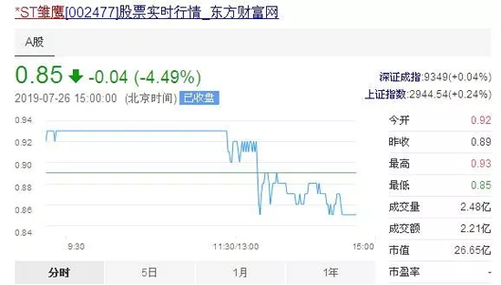 *ST雛鷹收出“天地板”