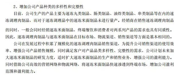 這點(diǎn)可以看看惠發(fā)食品的2018年年報(bào)。年報(bào)中說,經(jīng)銷商在銷售速凍調(diào)理肉制品的同時(shí),一般會(huì)同時(shí)經(jīng)銷速凍米面制品。為滿足客戶對(duì)產(chǎn)品品類多樣性、完整性的需求,公司計(jì)劃未來加大速凍米面制品的研發(fā)力度,適時(shí)擴(kuò)大速凍米面制品的生產(chǎn)和銷售業(yè)務(wù)。