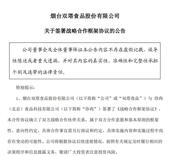 在發(fā)布了素肉月餅餡之后,雙塔食品緊接著又介紹了新的合作伙伴——珍肉(北京)食品科技有限公司。
