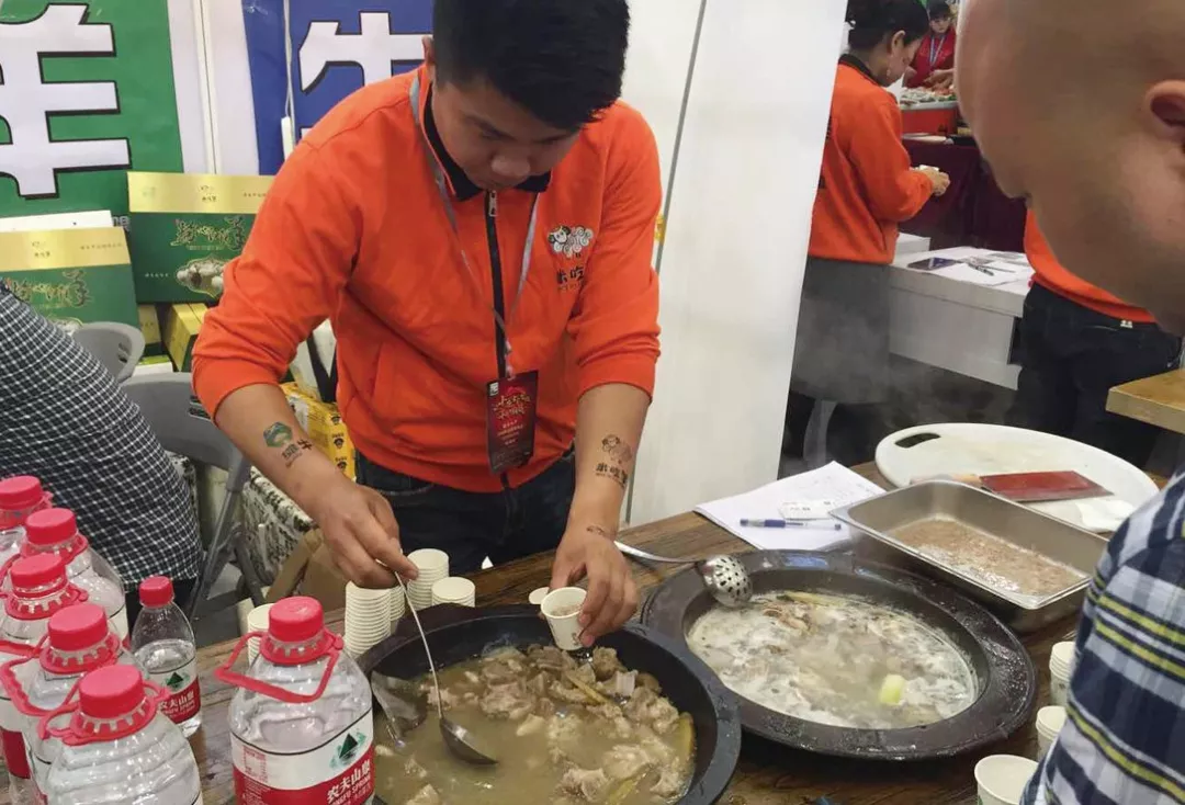 為了吸引參展人員,價(jià)格不菲的小龍蝦現(xiàn)場免費(fèi)試吃;為了展示灘羊的獨(dú)特口味,來自寧夏吳忠的某羊肉企業(yè)直接用泉水燉羊肉,引來眾多試吃者。除此之外,在金槍魚交易中心展區(qū),更是出現(xiàn)了一條一米多長的金槍魚,用來展示產(chǎn)品和吸引客流。