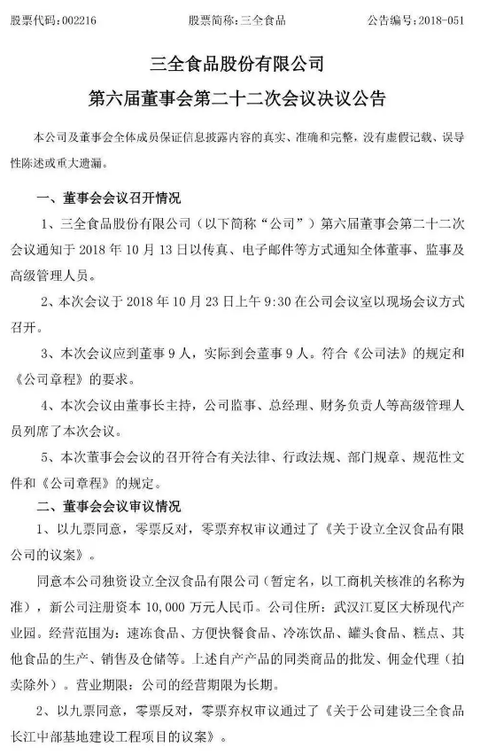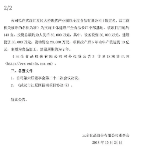 三全食品公告透露,選擇在武漢建廠,是為了靠近消費(fèi)市場(chǎng)。