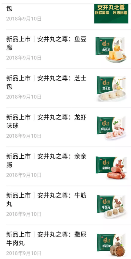 2018年8月27日,安井食品微信公眾號(hào)推送《丸之尊,全新上市!》一文,以“每一顆丸子都不將就”為口號(hào),推出魚籽包、魚豆腐、芝士包、龍蝦味球、親親腸、撒尿牛肉丸、牛筋丸等多款全新升級(jí)產(chǎn)品。