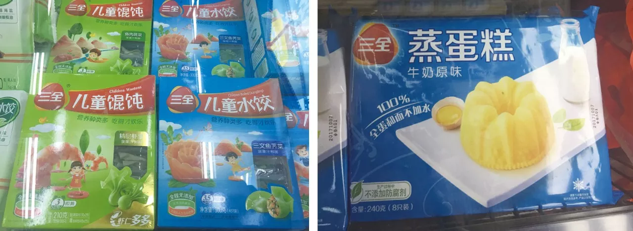 再看我們關(guān)注最多的速凍食品,記者發(fā)現(xiàn)“不添加”字眼多存在于一些大品牌產(chǎn)品中,如雙匯、三全和灣仔碼頭,看看它們都是如何標(biāo)注的。