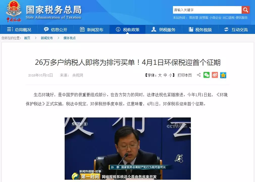 2018年1月1日,環(huán)境保護稅法已正式實施。按照稅法規(guī)定,環(huán)保稅按季度申報,這意味著,4月1日,環(huán)保稅將迎來首個征期。截至目前,各地稅務(wù)機關(guān)已識別認定環(huán)保稅納稅人26萬余戶。