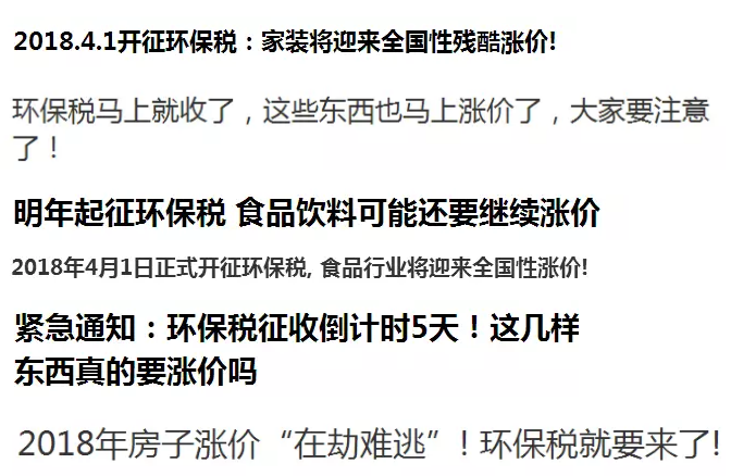 這種近乎“煽動性”的文章比比皆是。隨手在網(wǎng)絡(luò)上搜索關(guān)鍵字“環(huán)保稅”、“漲價”等,各行各業(yè)都難于幸免。滿眼“漲價潮”弄得人心慌慌。