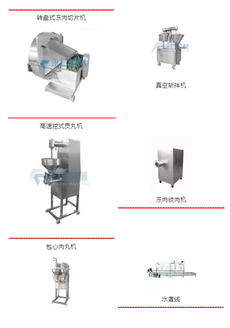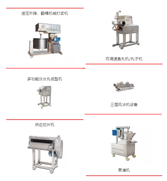 公司主要設備有:無極調速打漿機、液壓升降打漿機、真空臥式打漿機、刨肉機、強力絞肉機、魚丸機、貢丸機、包芯機、墨魚丸三用機、多功能蟹排機、五香卷機、、腰花腸成型機、供料機、烤腸機、雙聯(lián)泵浦機、三層帶噴淋水冷槽體、油炸機、水煮線和蒸線等幾十種食品機械系列。